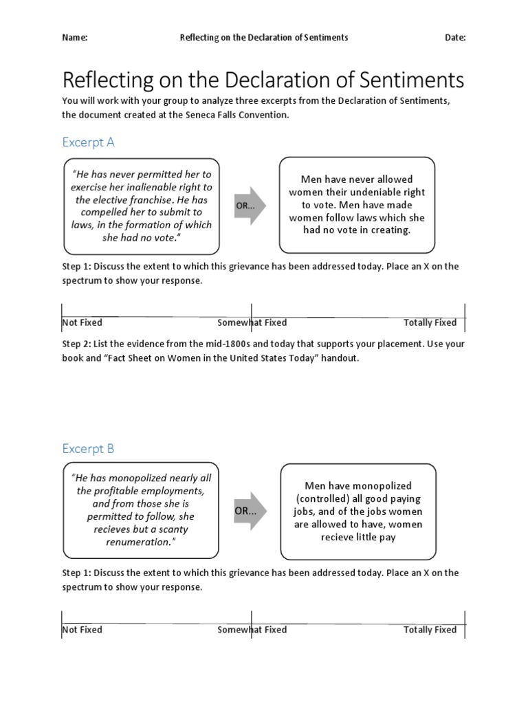 Wright elizabeth cady stanton and mary ann mcclintock met to assemble the agenda for the meeting along with the speeches that would be made. Compare the declaration of sentiments and resolutions to the declaration of independence. It is called pathos to a mode of persuasion that is achieved when the speech stirs the emotions of the hearers. So begins the list of sentiments or grievances in stanton s declaration.
