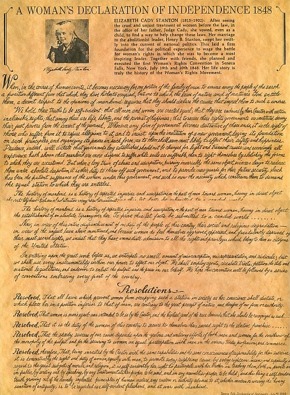 Based on the american declaration of independence the sentiments demanded equality with men before the law in education and employment. When in the course of human events it becomes necessary for one portion of the family of man to assume among the people of the earth a position different from that which they have hitherto occupied but one to which the laws of nature and nature s god entitle them a decent respect to the opinions of mankind requires that they should declare the. The declaration of sentiments and resolutions was drafted by elizabeth cady stanton for the women s rights convention at seneca falls new york in 1848. Held in seneca falls new york the convention is now known as the seneca falls convention the principal author of the declaration was elizabeth cady stanton.
